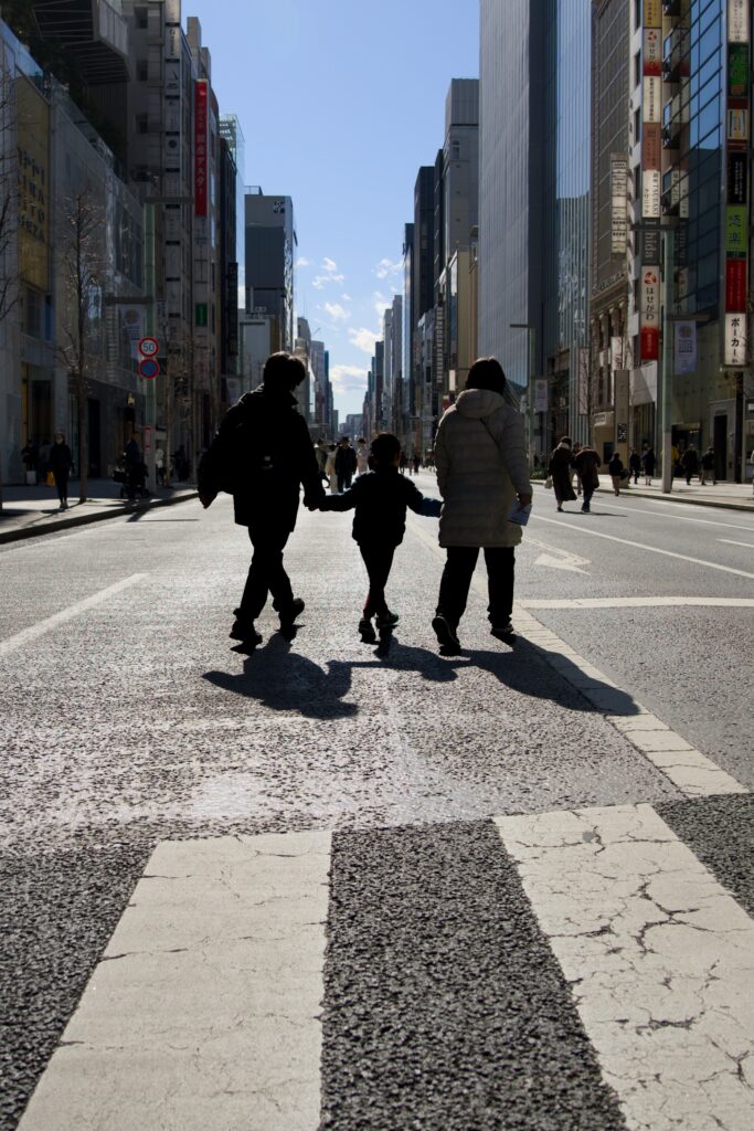 An Wochenenden wird eine der großen Hauptstraßen in Ginza gesperrt und wie eine Fußgängerzone genutzt.