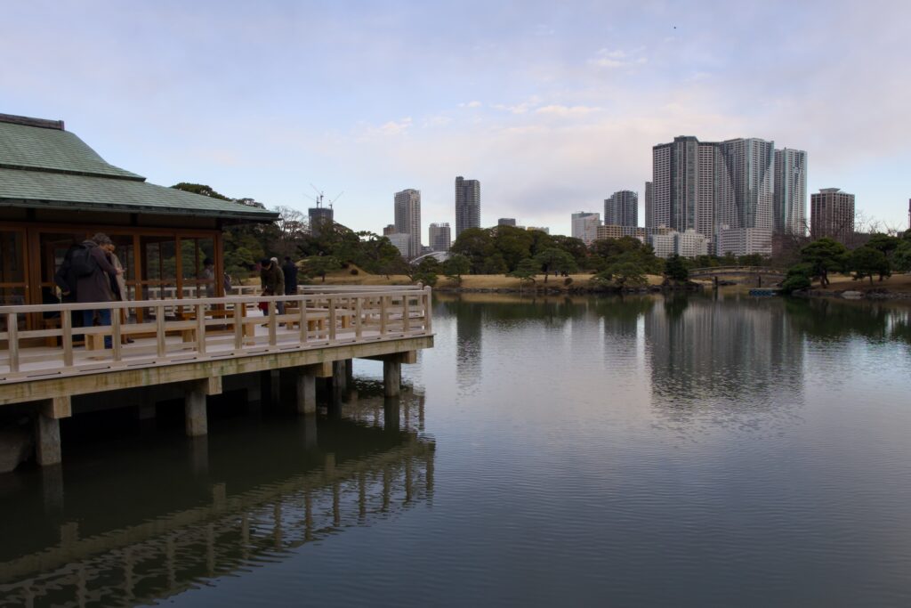 In Ginza befinden sich auch die Hamarikyu-Gärten – ein sehr schöner Park, in dem auch diverse Kirschbäume stehen. Leider hat das Wetter nicht 100%-ig mitgespielt und die Sonne hatte sich bereits verabschiedet.
