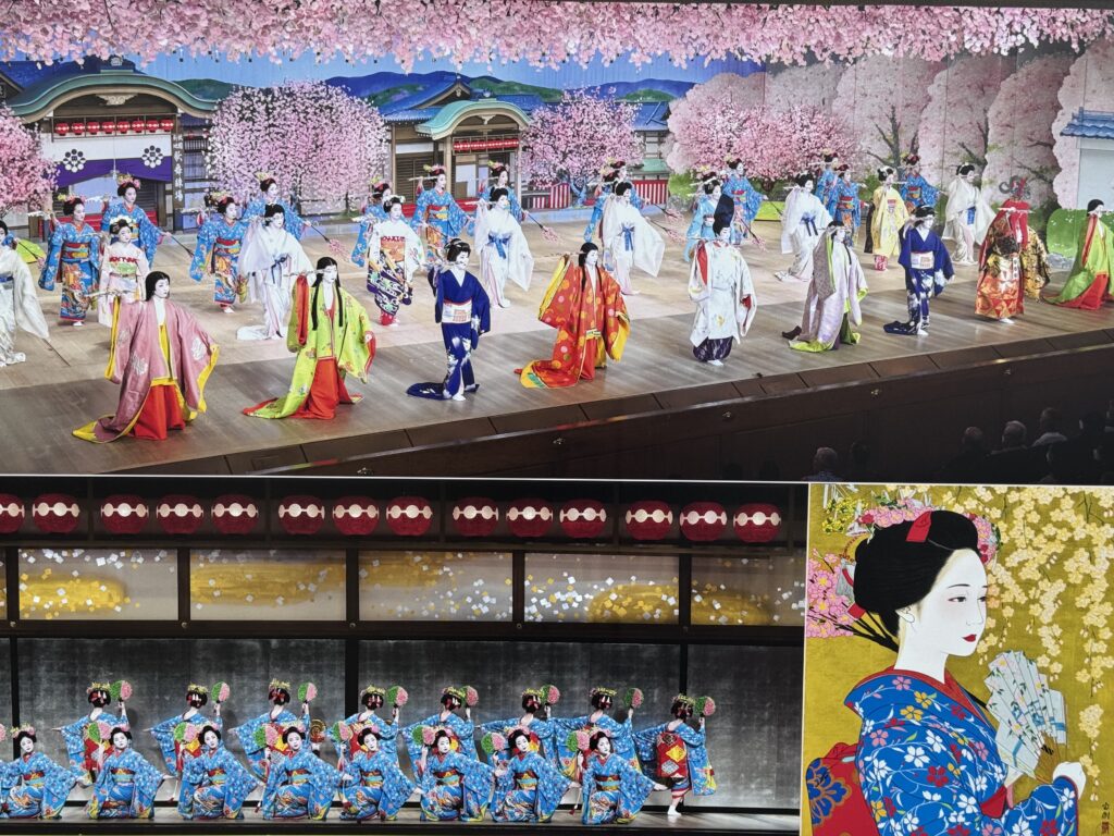Im Anschluss im 都をどり (Miyako odori) – ein jährlich im April stattfindende Tanzaufführung in Gion. Es war absolut großartig. Das Bühnenbild war unfassbar schön und detailliert und die Vorstellung war durch und durch beeindruckend.
